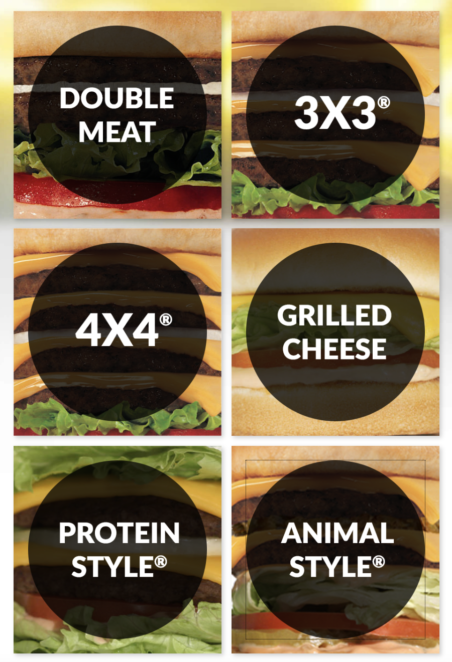 인 앤 아웃은 맥도널드, 버거킹, 롯데리아처럼 다양한 메뉴가 없이 3가지 버거 메뉴와 탄산음료, 그리고 3종류의 밀크셰이크가 있습니다.