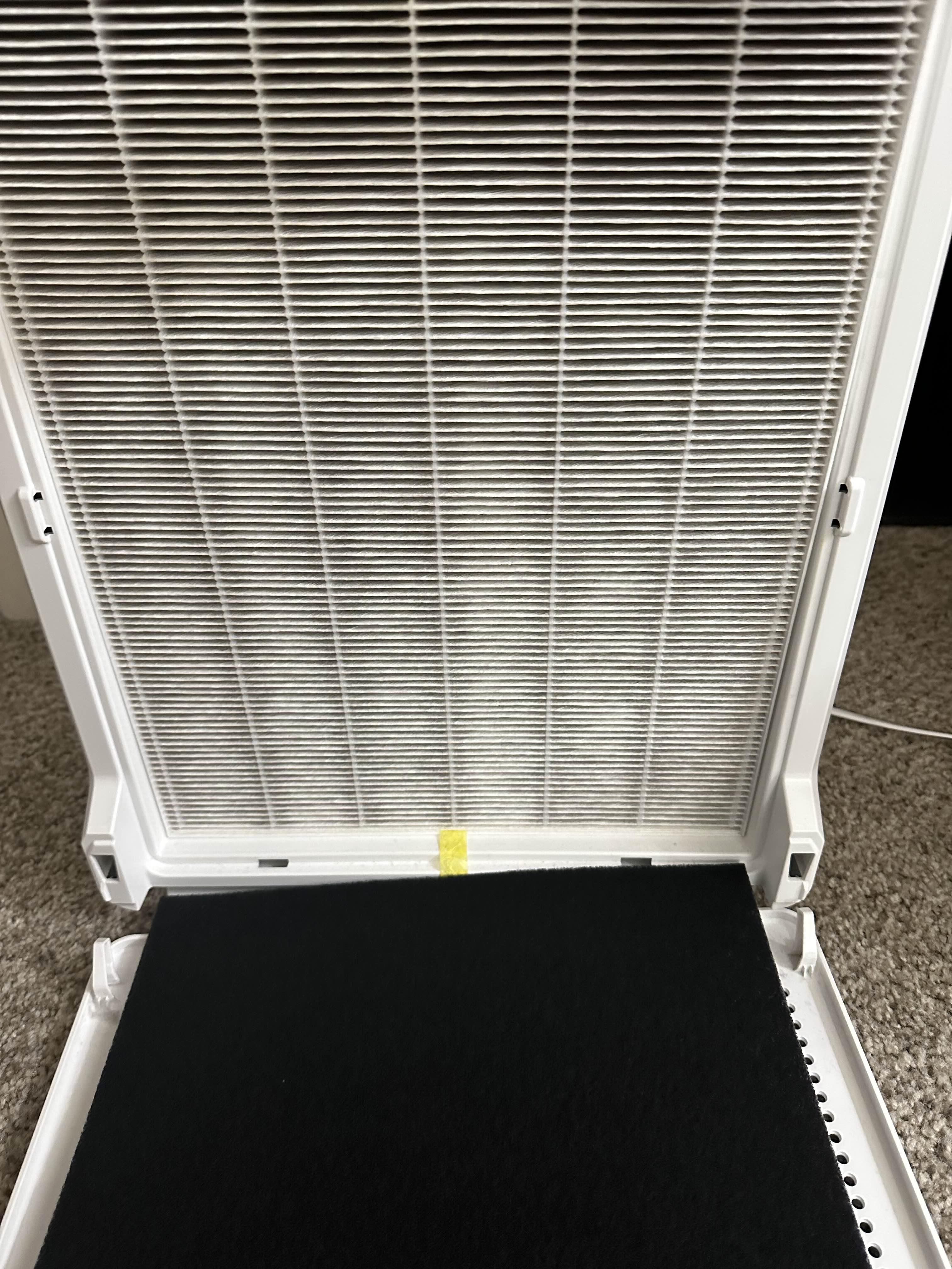 그때 필터를 교체해주면 되는데요 저는 너무 먼지가 많은 것 같아서 공기청정기 구매 시 받았던 리필 필터를 이용해서 바로 교체해줬습니다.