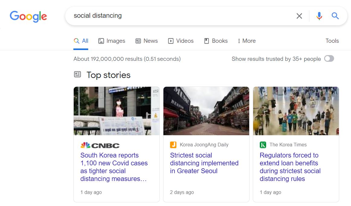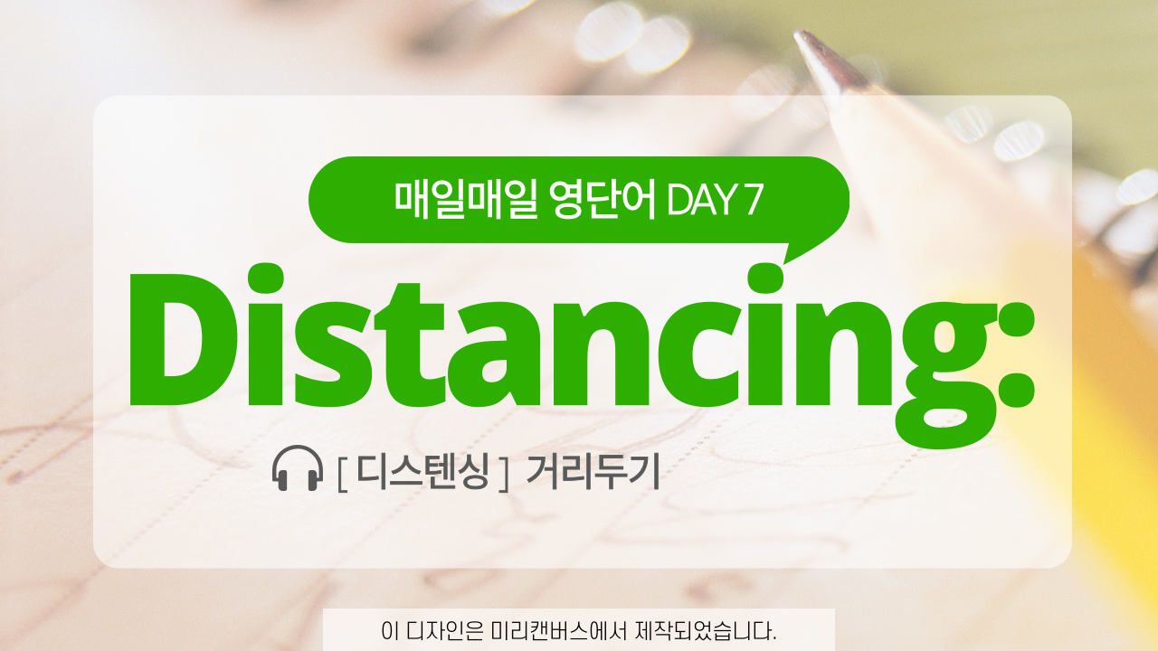 Social (사회적인) + distancing (거리두기) 를 결합한 합성어입니다.