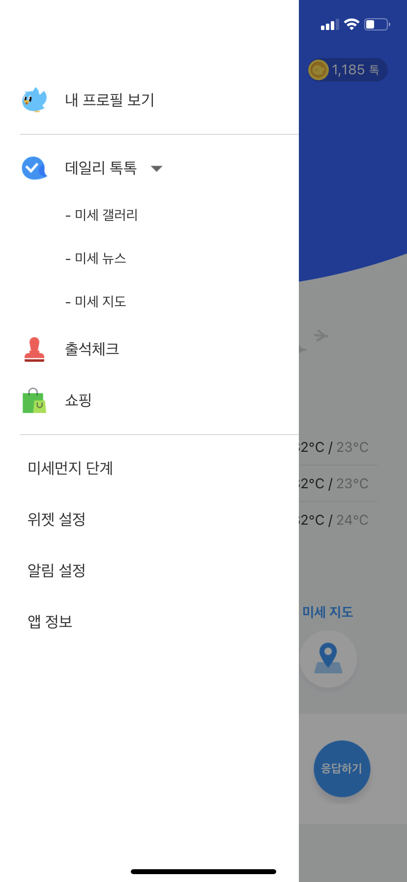 메뉴를 보면 ‘출석체크’ ‘쇼핑’이 있어서 조금 의아할 수 있어요!