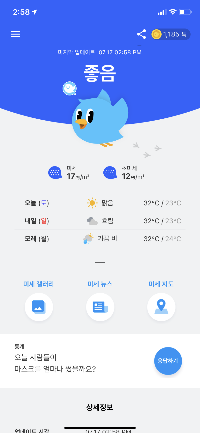 미세먼지 농도가 나쁨 수준이 되면 저 파랑새 캐릭터가 붉고 검은 악당 캐릭터로 변해요ㅎㅎ