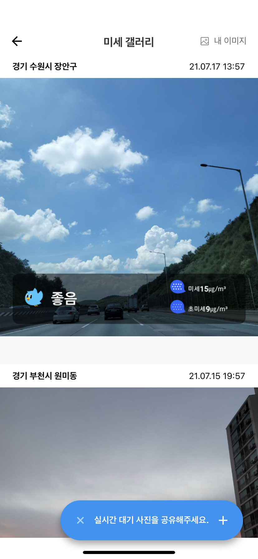 미세 갤러리에는 다른 사용자들이 업로드한 대기 사진도 볼 수 있습니다!