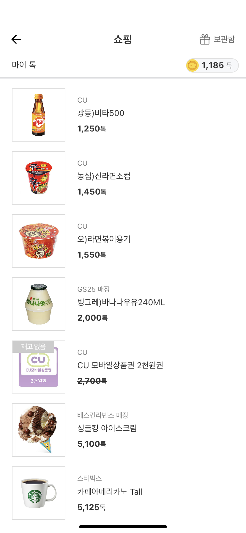 적립한 돈을 모아서 편의점, 배라, 스벅에서 교환할 수 있는 기프티콘을 살 수 있어요!