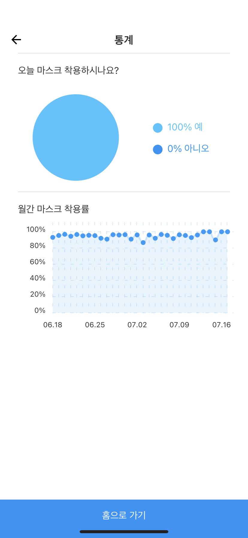 요즘은 코로나 시국이라 100%가 나오지만 보통은 미세먼지 농도에 따라 사람들이 착용하죠.
