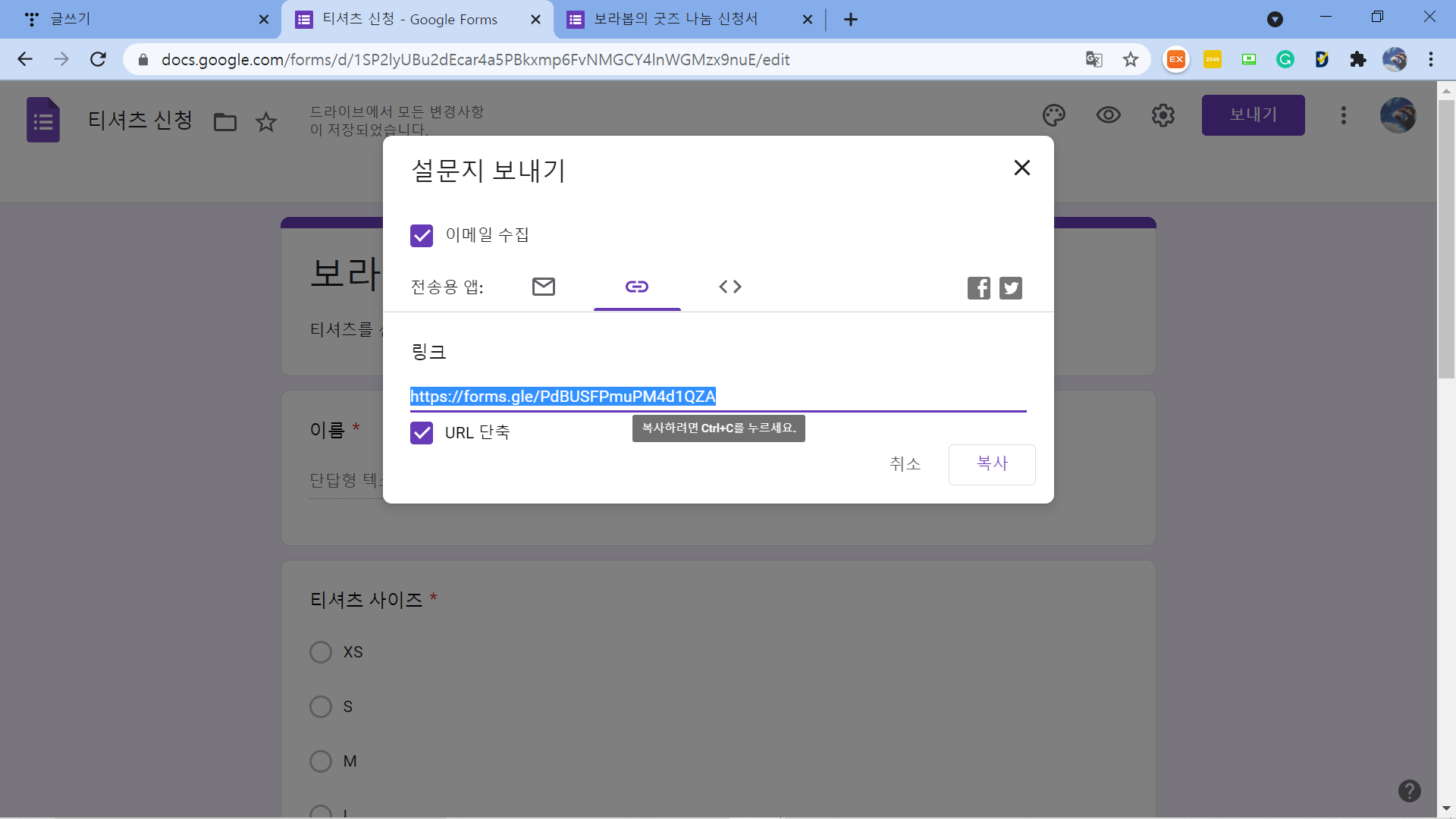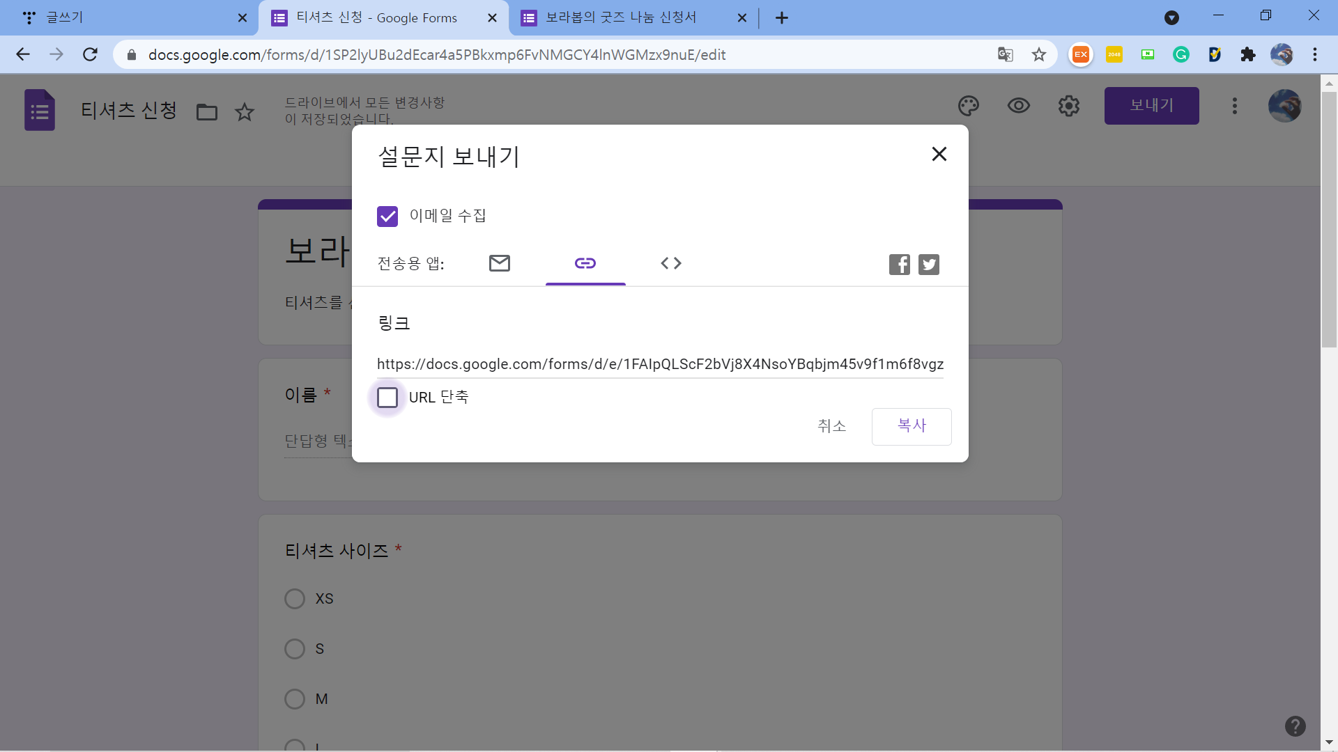 * ‘URL 단축’을 누르면 더 짧은 링크를 공유할 수 있습니다.