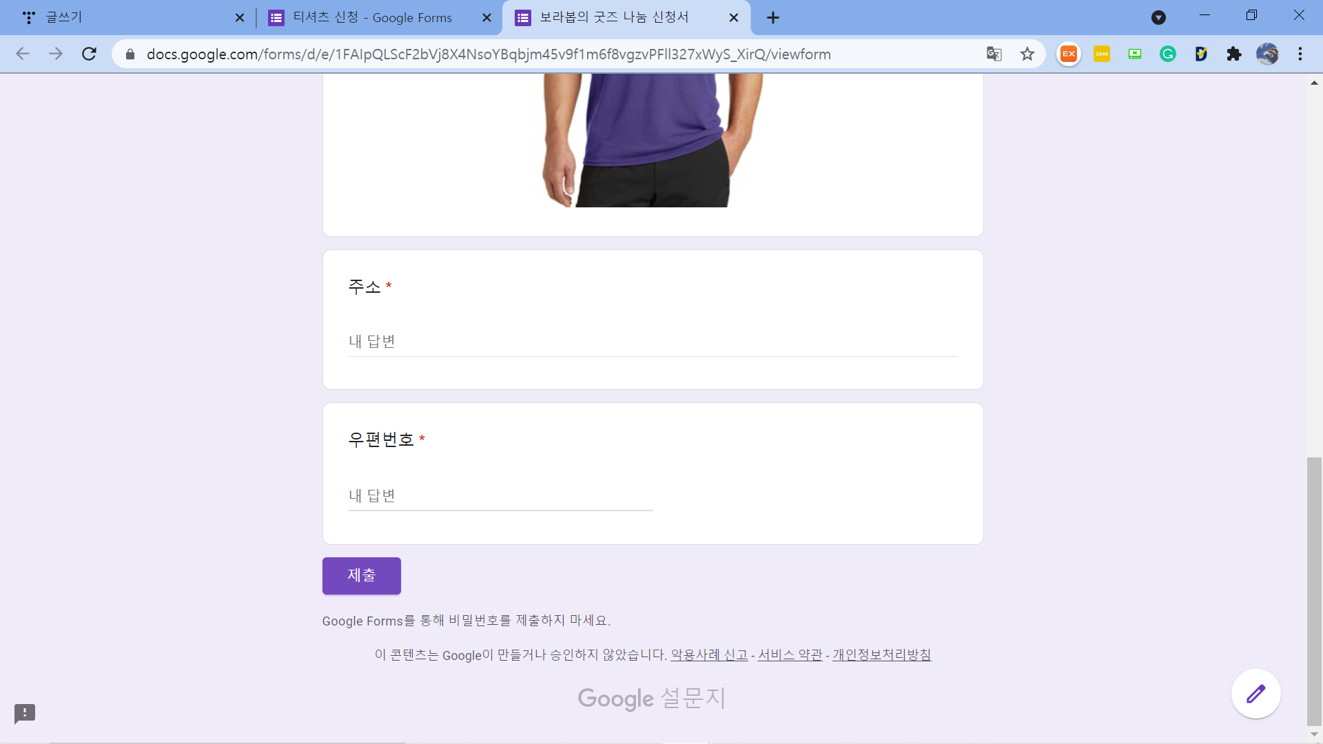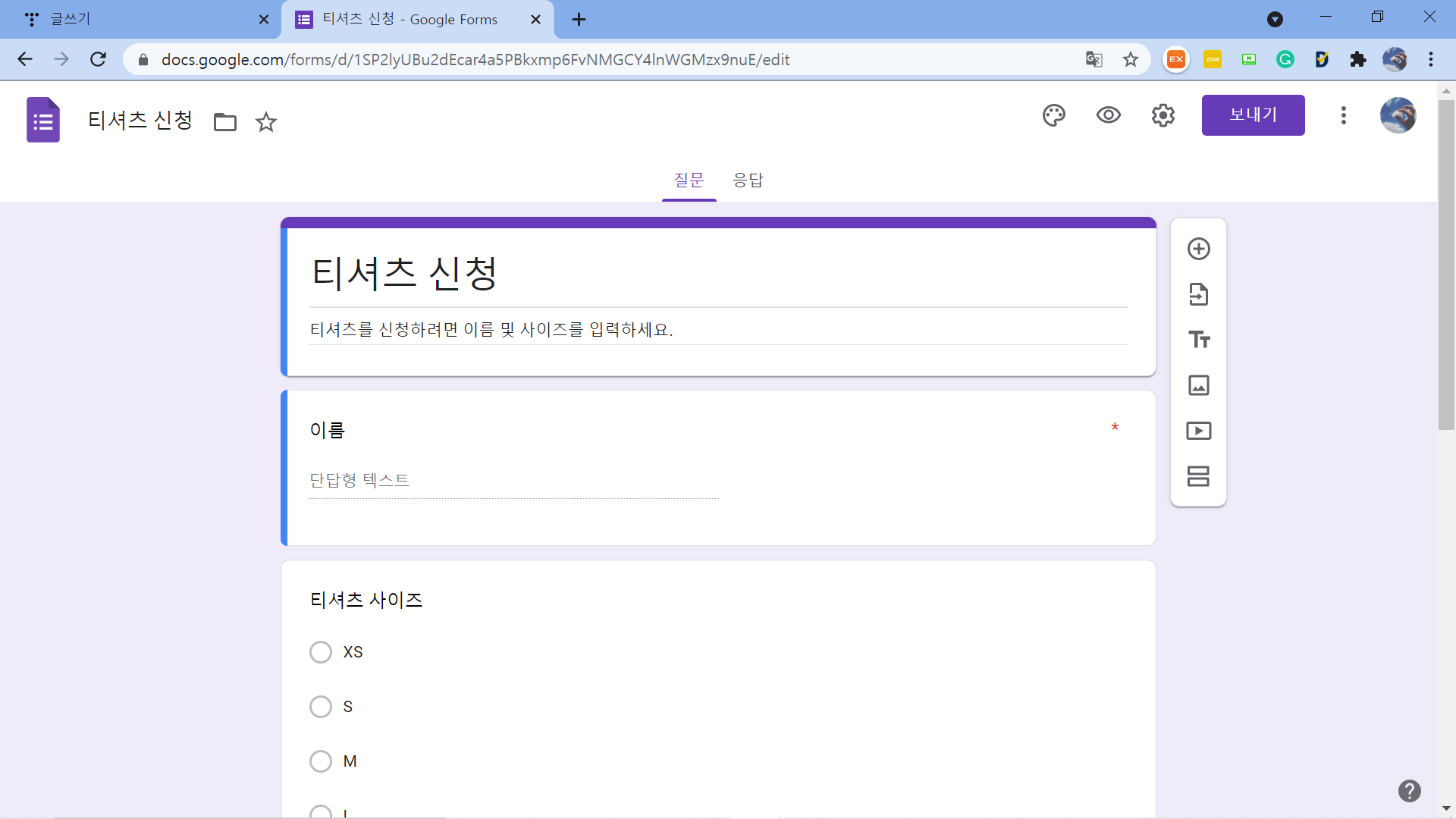 저는 ‘티셔츠 신청’ 템플릿을 골랐어요!
