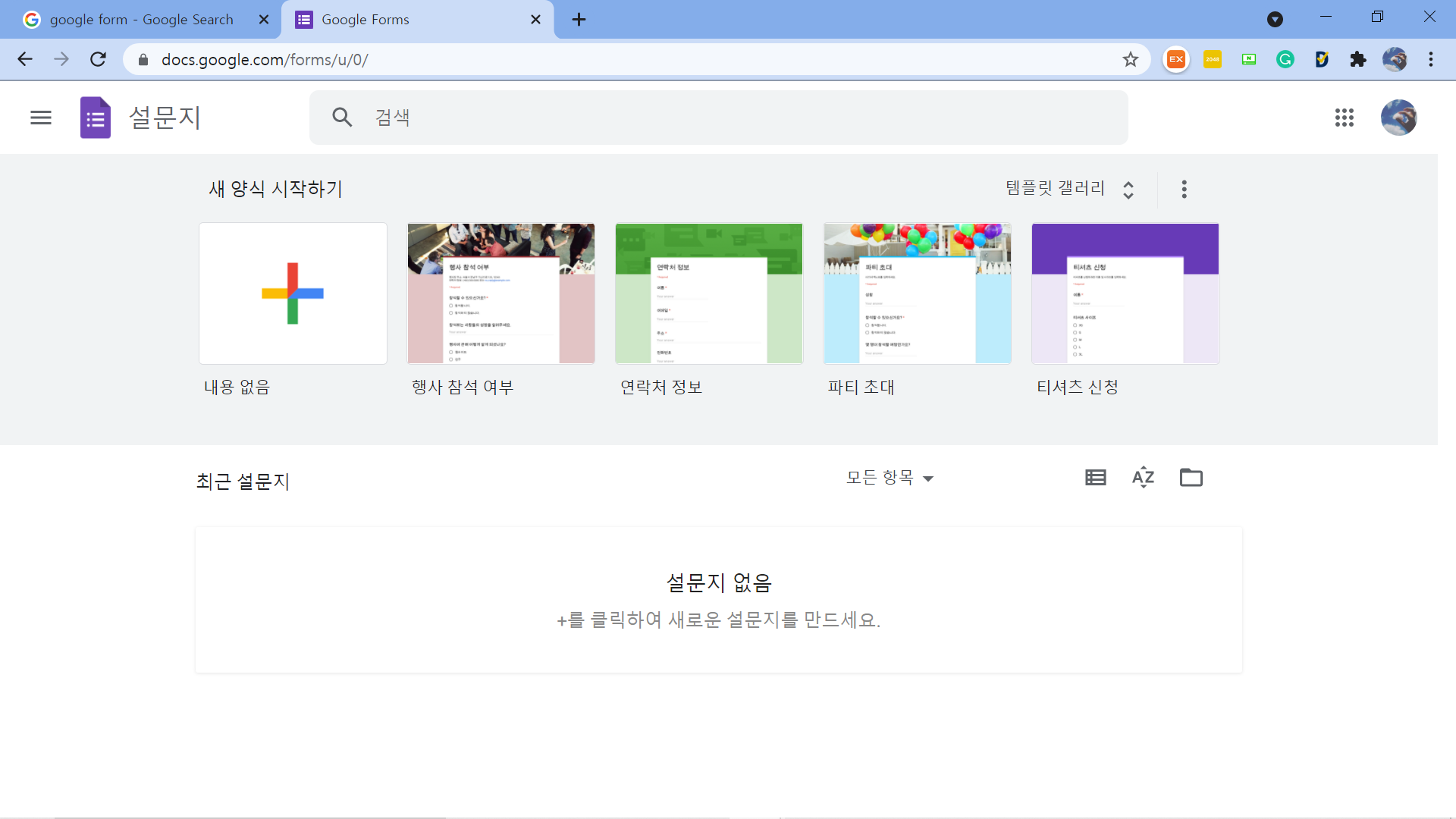 1. 먼저 구글에 구글 폼 (Google Form)을 검색하세요