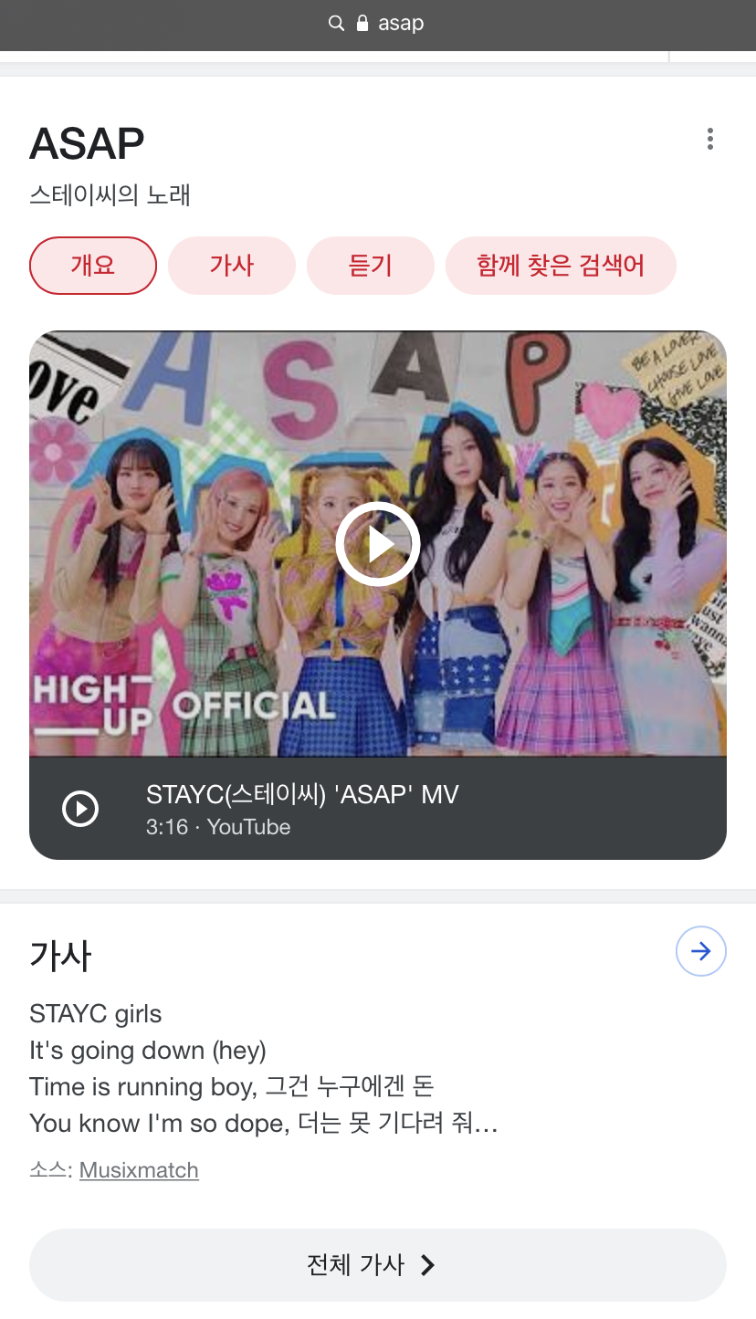 제가 요즘 즐겨듣는 스테이씨의 노래 ‘ASAP’ 의 뜻을 아까 자세히 소개해 드렸는데 기억 나시나요?