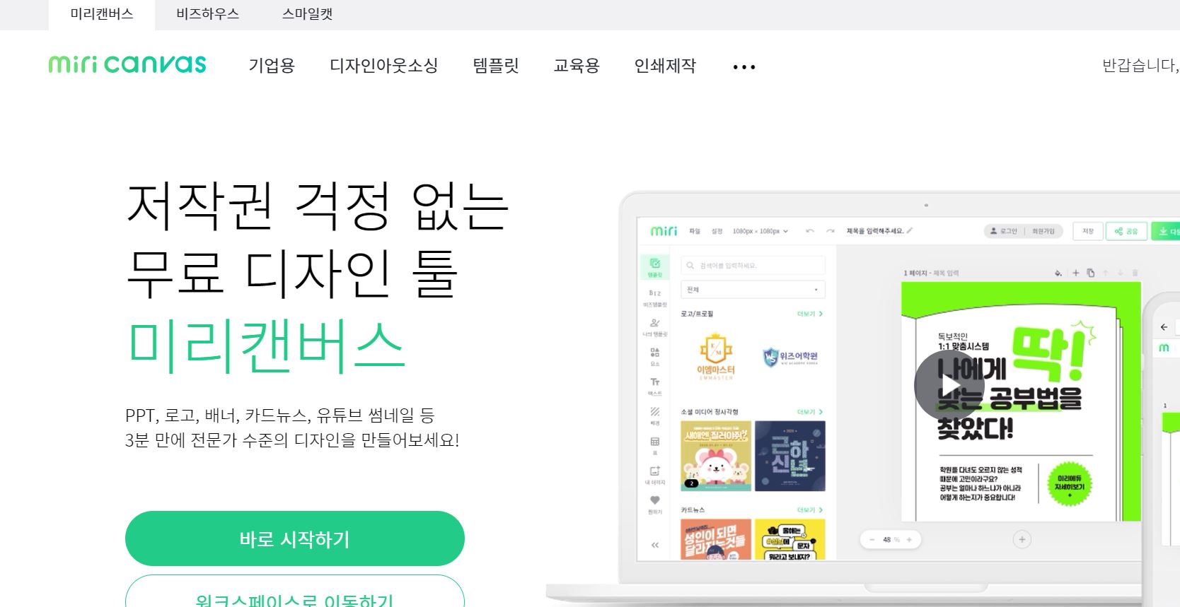제가 요즘 자주 사용하고 있는 <미리캔버스>라는 사이트입니다.