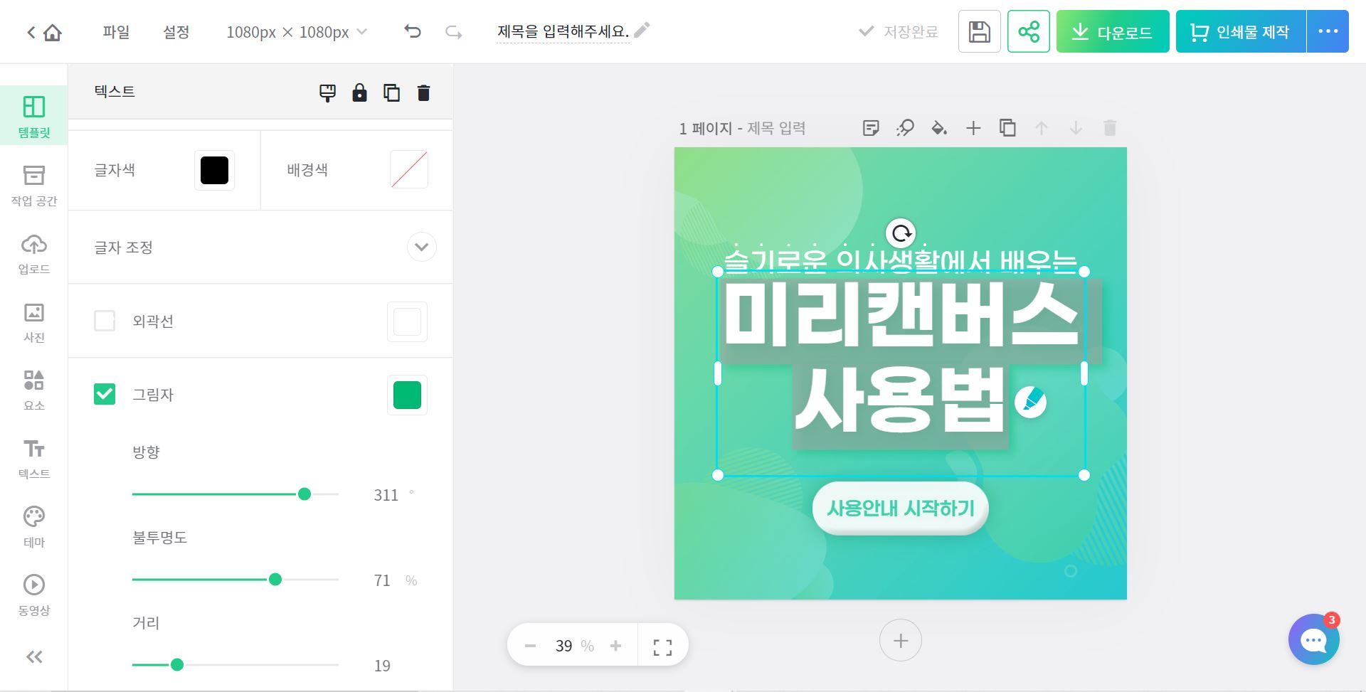 선택한 팸플릿에 원하는 문구를 넣어줍니다.