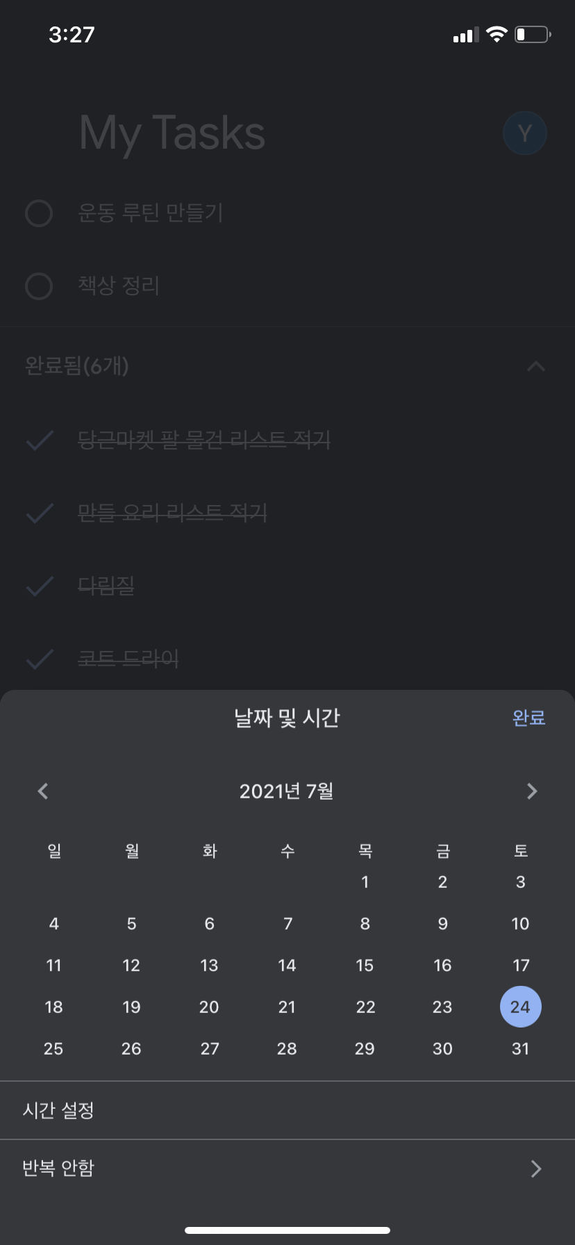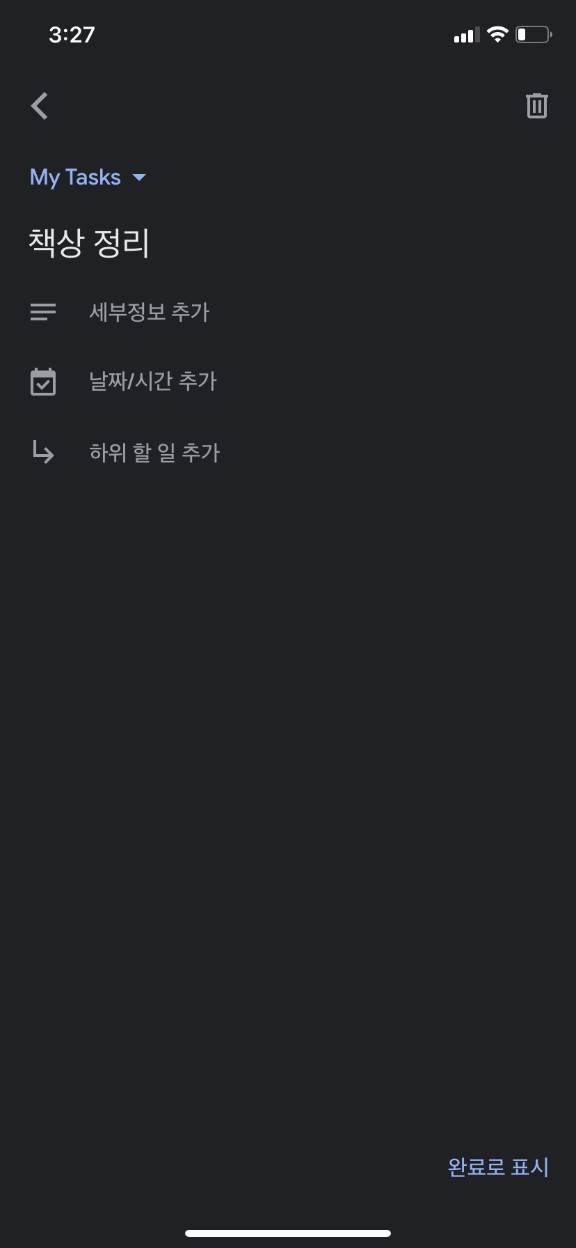 해당 일정을 완료하면 '완료로 표시' 하면 완료된 일로 분류됩니다.