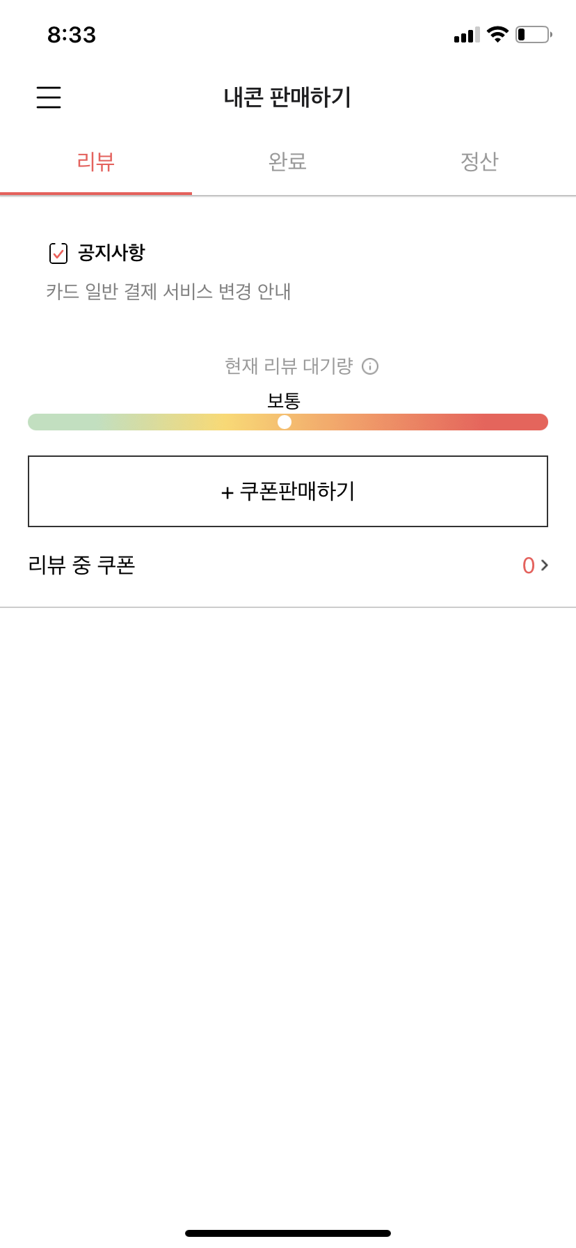 쿠폰을 판매할 경우 신청 후에 어플에서 검토 후 반려 혹은 판매 통과가 됩니다.