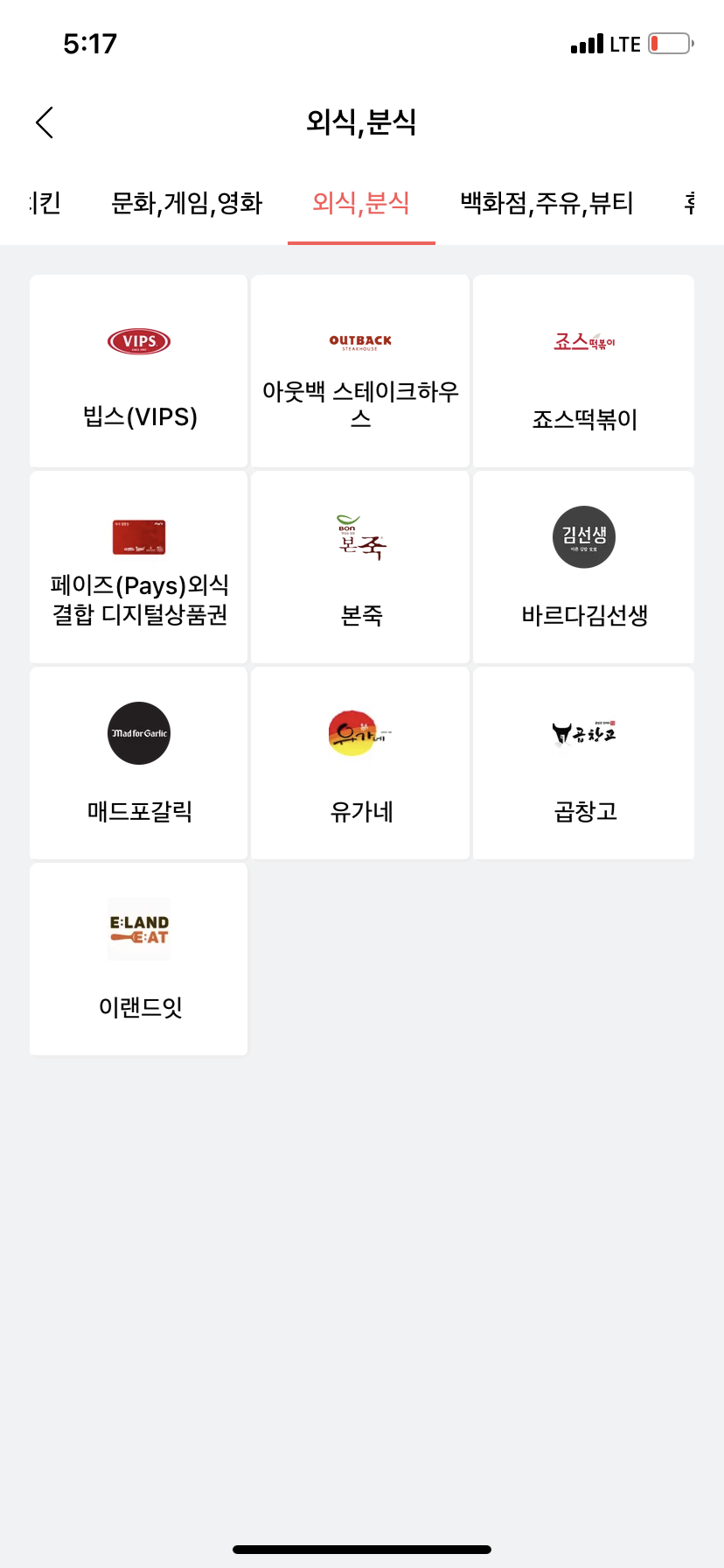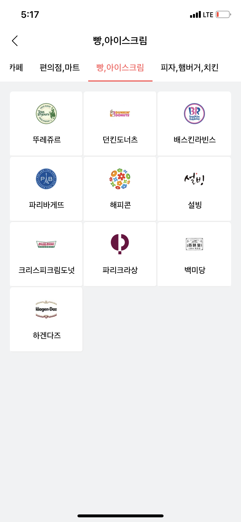 (스타벅스, 파리바게트, 맥도날드, GS25, 롯데시네마 등)