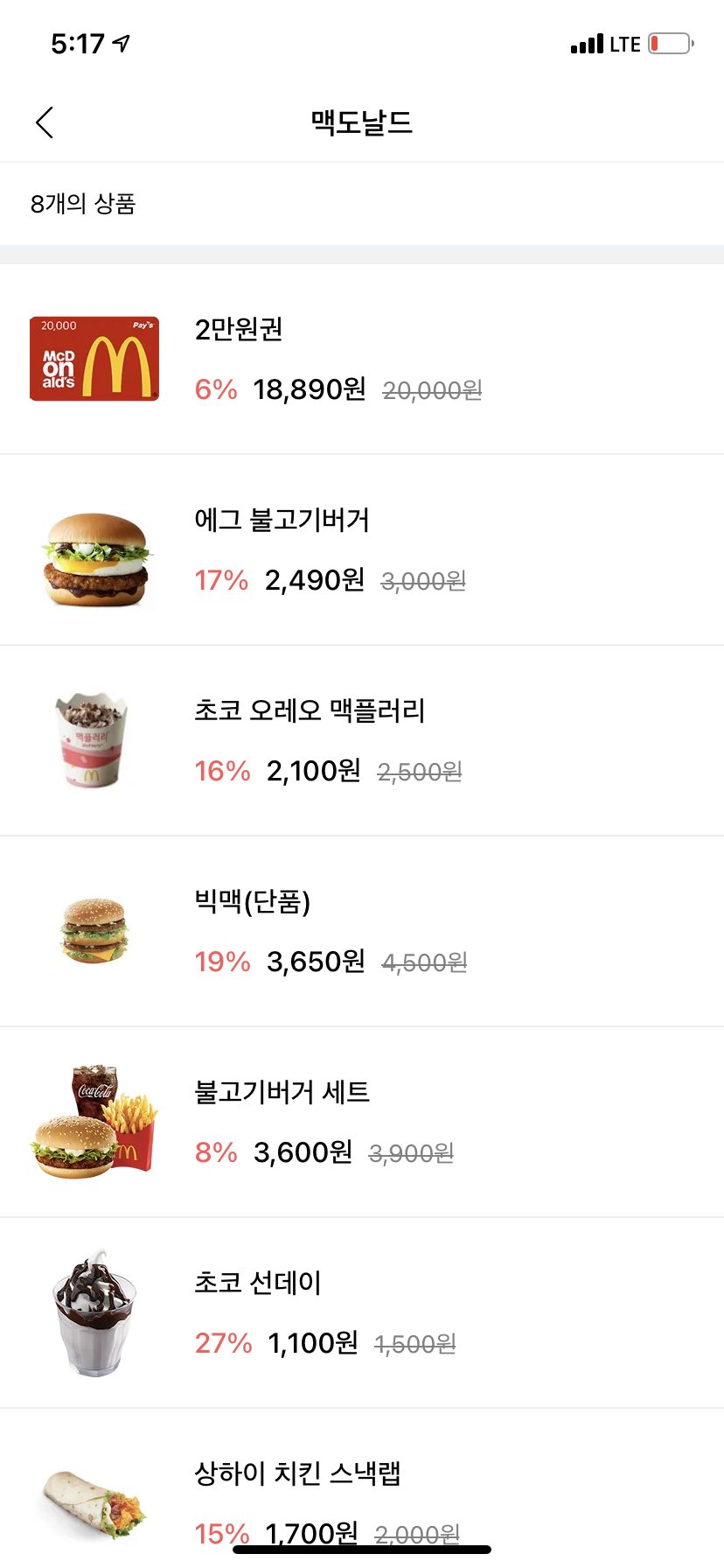 예를 들어, 교촌치킨에서 23000원에 판매하고 있는 세트메뉴를 이 어플 내에서는 20410원에 구매할 수 있습니다.