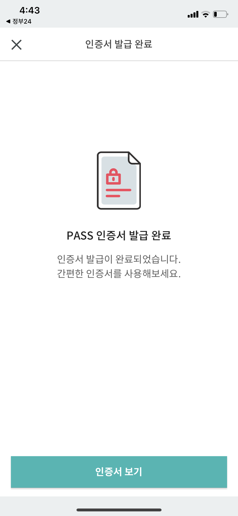 Pass 어플을 통해서 인증서를 발급했습니다.