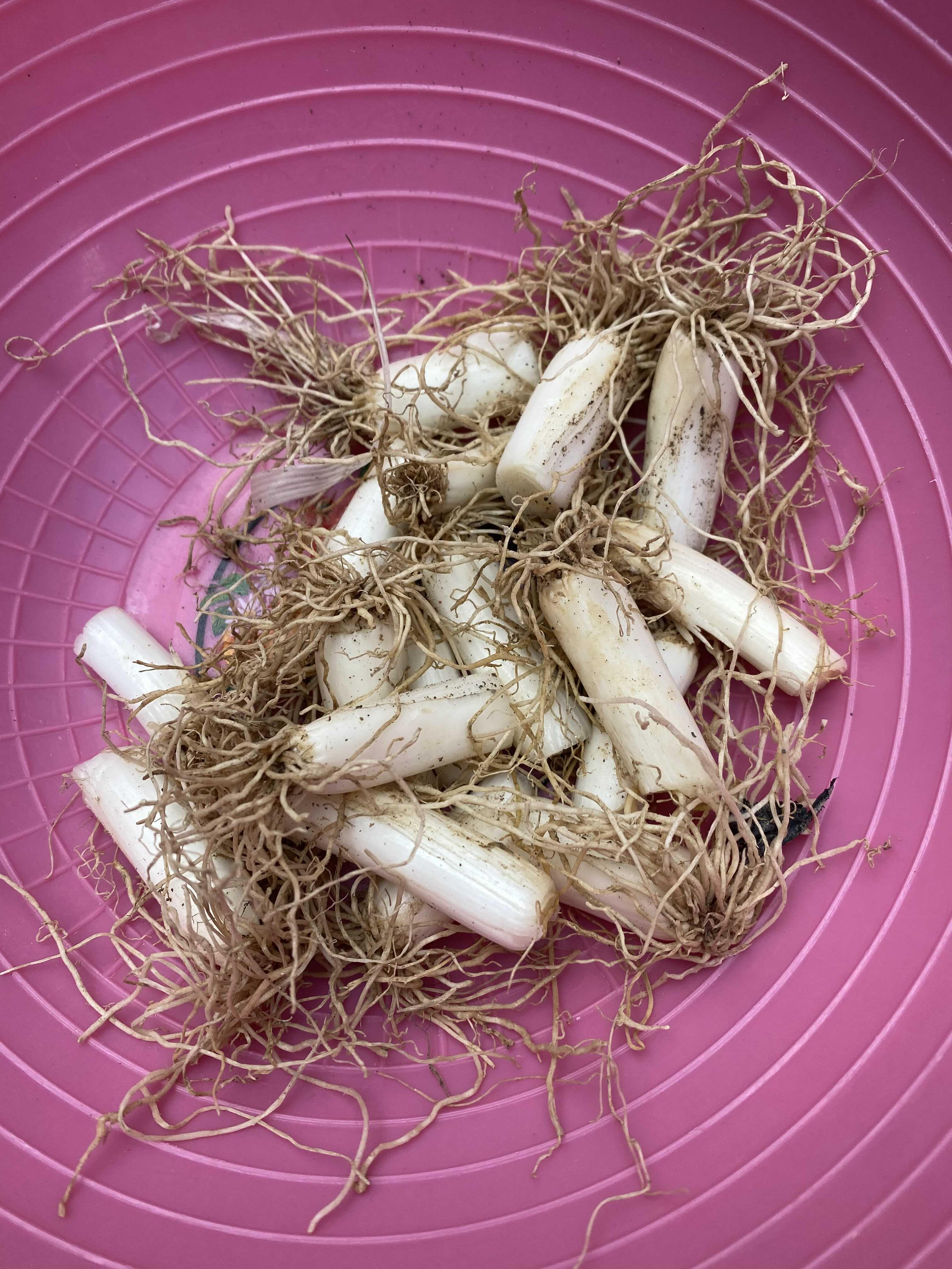 First, cut the root of green onions.