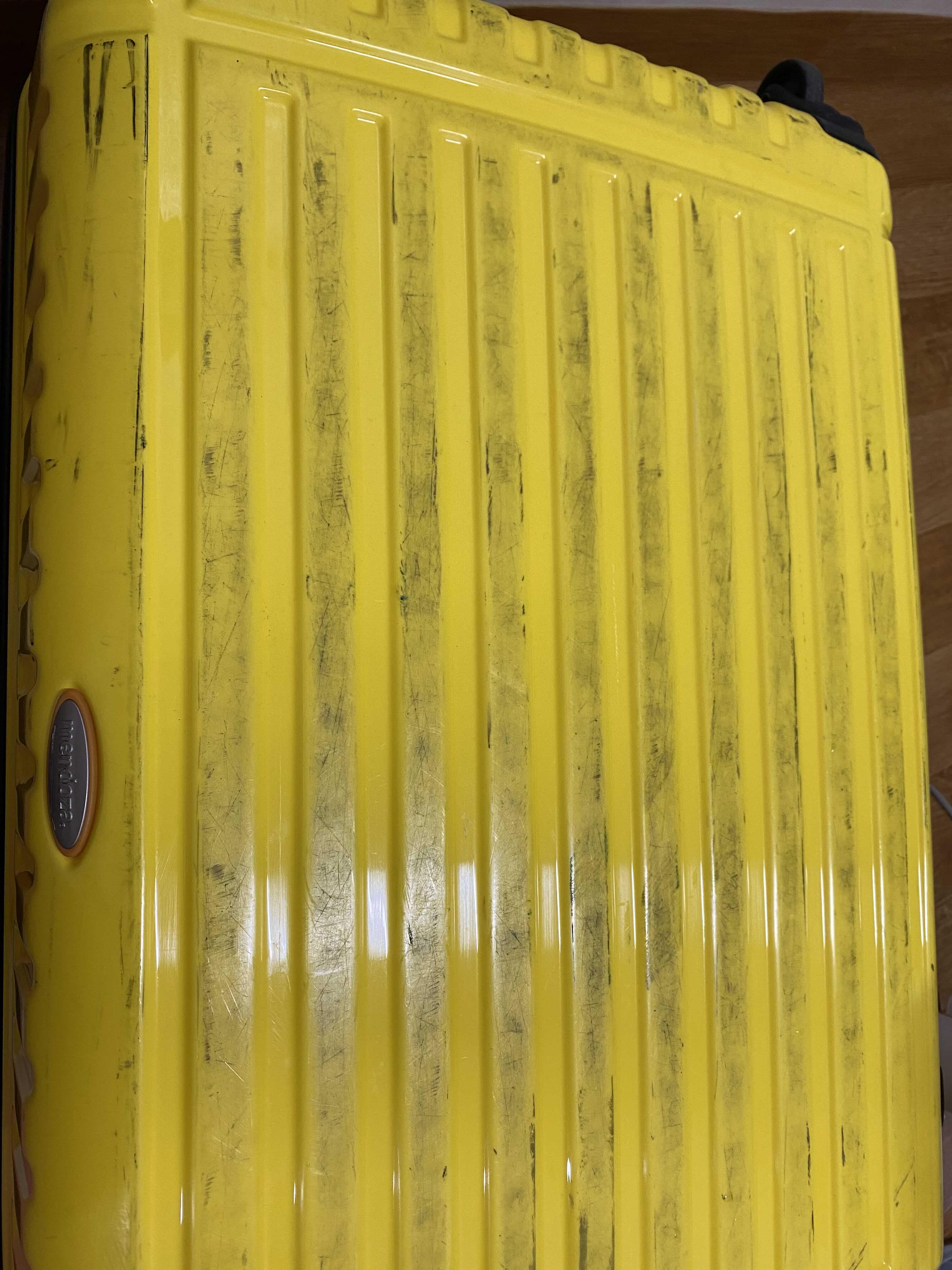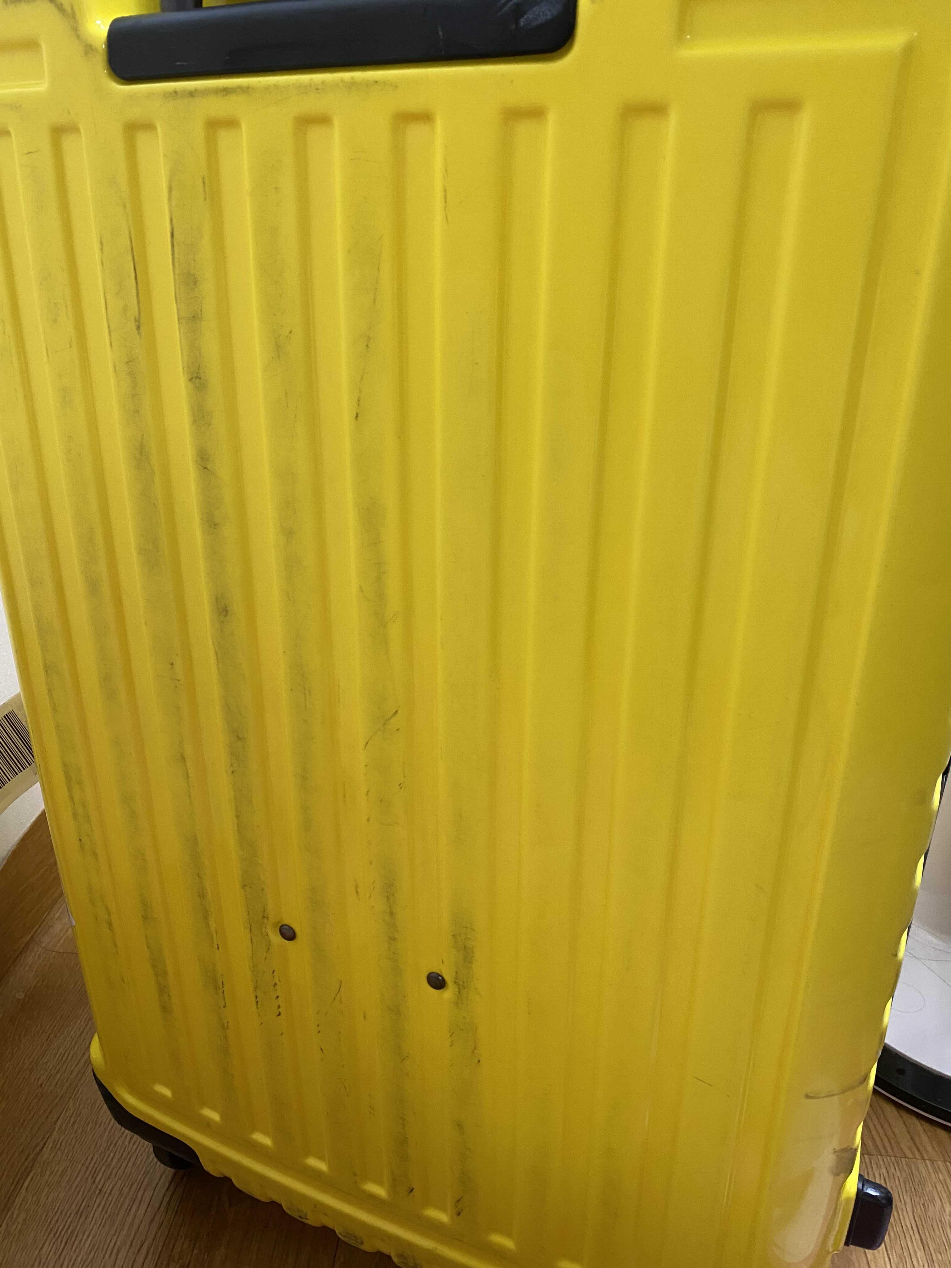 일단 밝은 색 캐리어에는 공항 컨베이어 벨트에서 묻은 얼룩과 운반 도중 생긴 상처가 눈에 더 띄어요