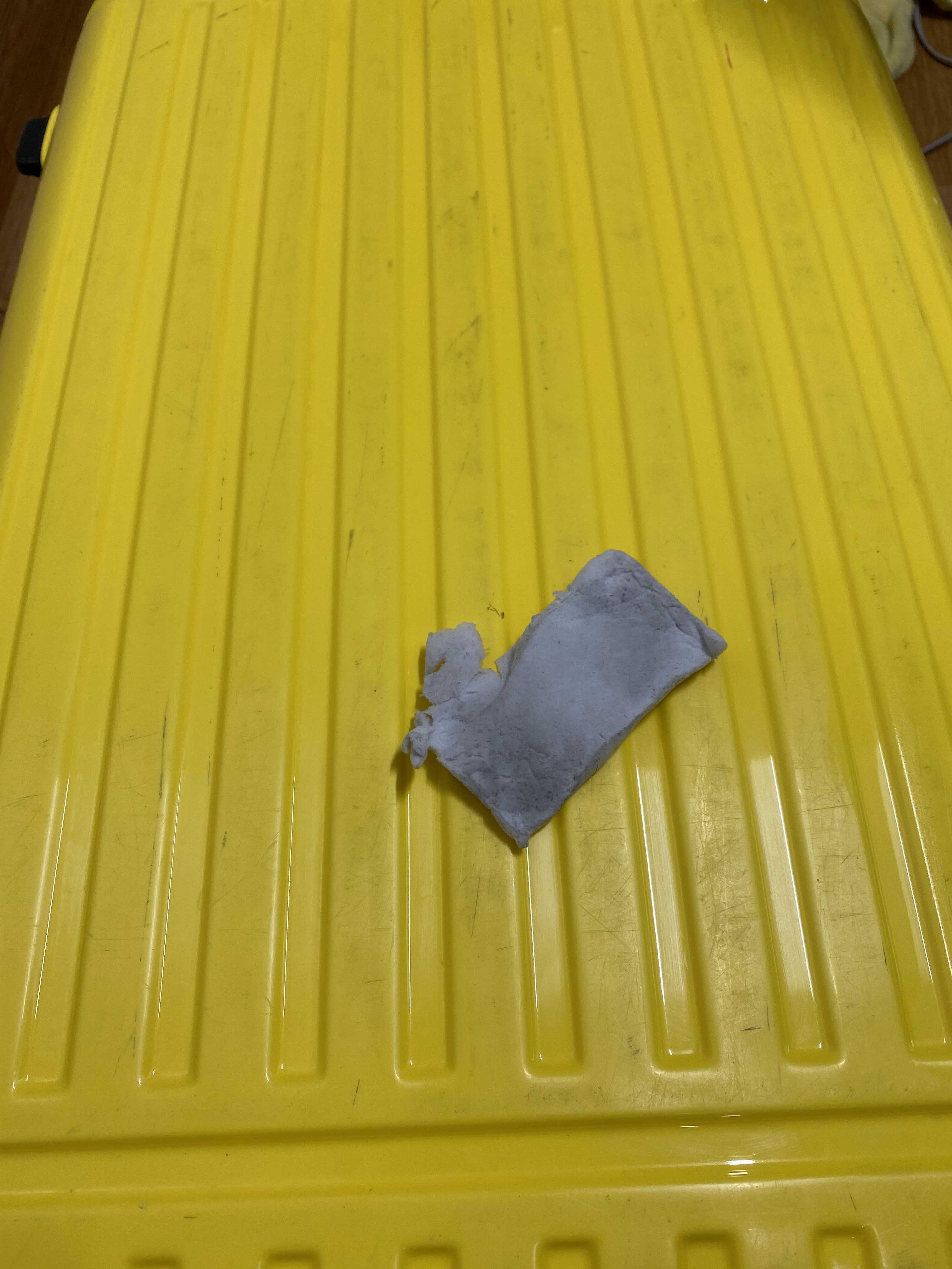 보통은 캐리어에 껌 얼룩과 비슷한 얼룩이 있어서 로션이나 선크림으로 지울 수 있을 거라고 생각해서