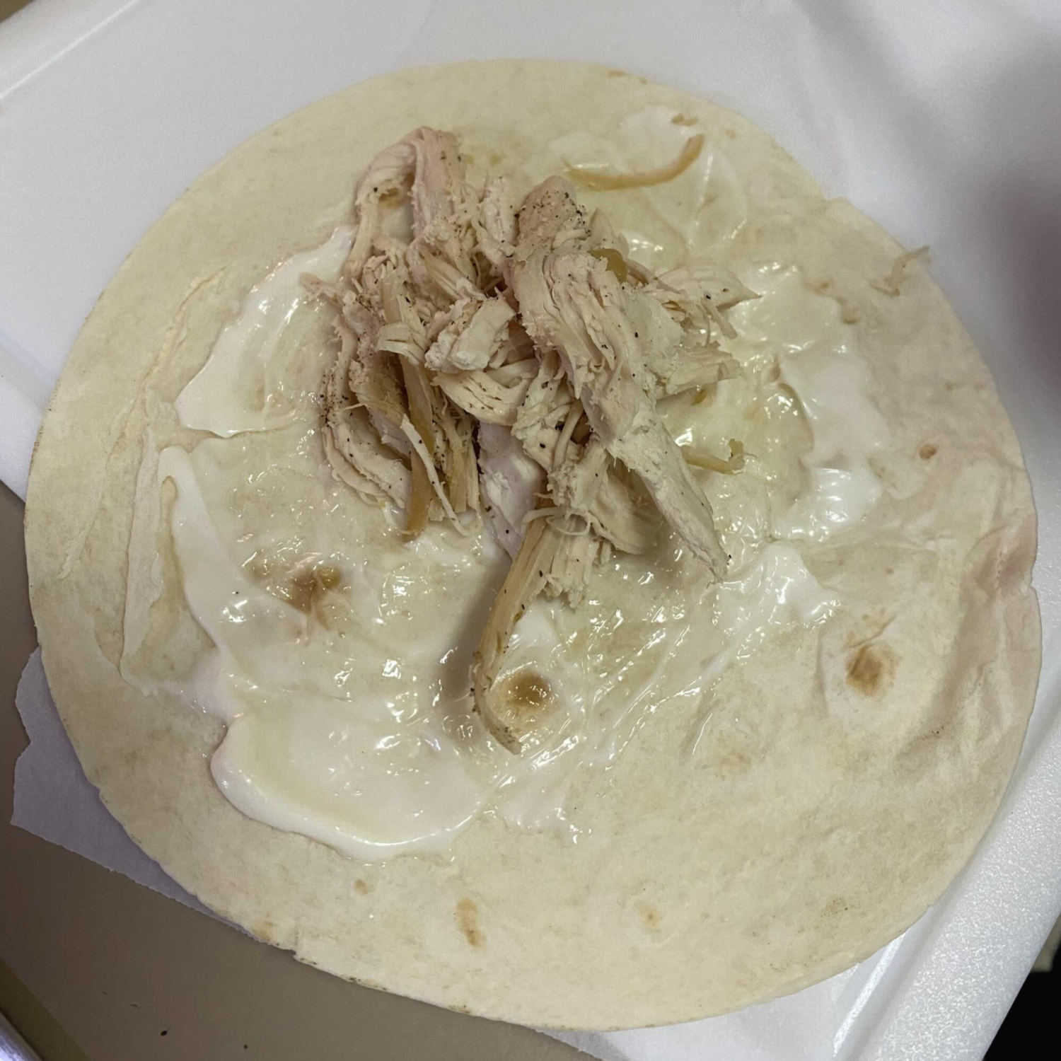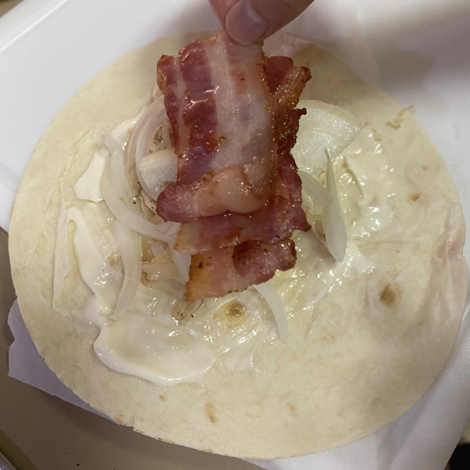 재료: 또띠아, 닭고기, 베이컨, 양상추, 양파
