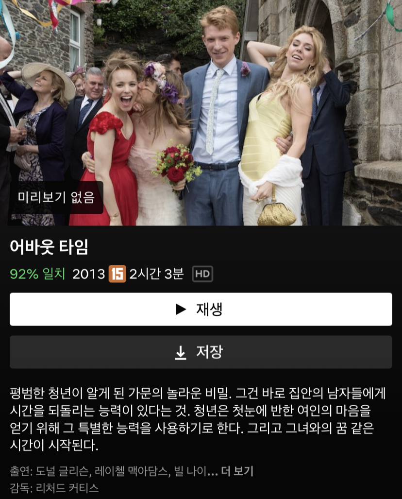 - 시간을 되돌릴 수 있는 능력을 가진 남자 주인공이 사랑하는 여자의 마음을 사로잡기 위해서 능력을 사용하는 영화입니다. 그 후로 계속 시간을 돌리면서 일어나는 상황을 보여주면서 우리가 시간을 어떻게 보내야 하는 가 다시금 생각하게 만드는 영화입니다.