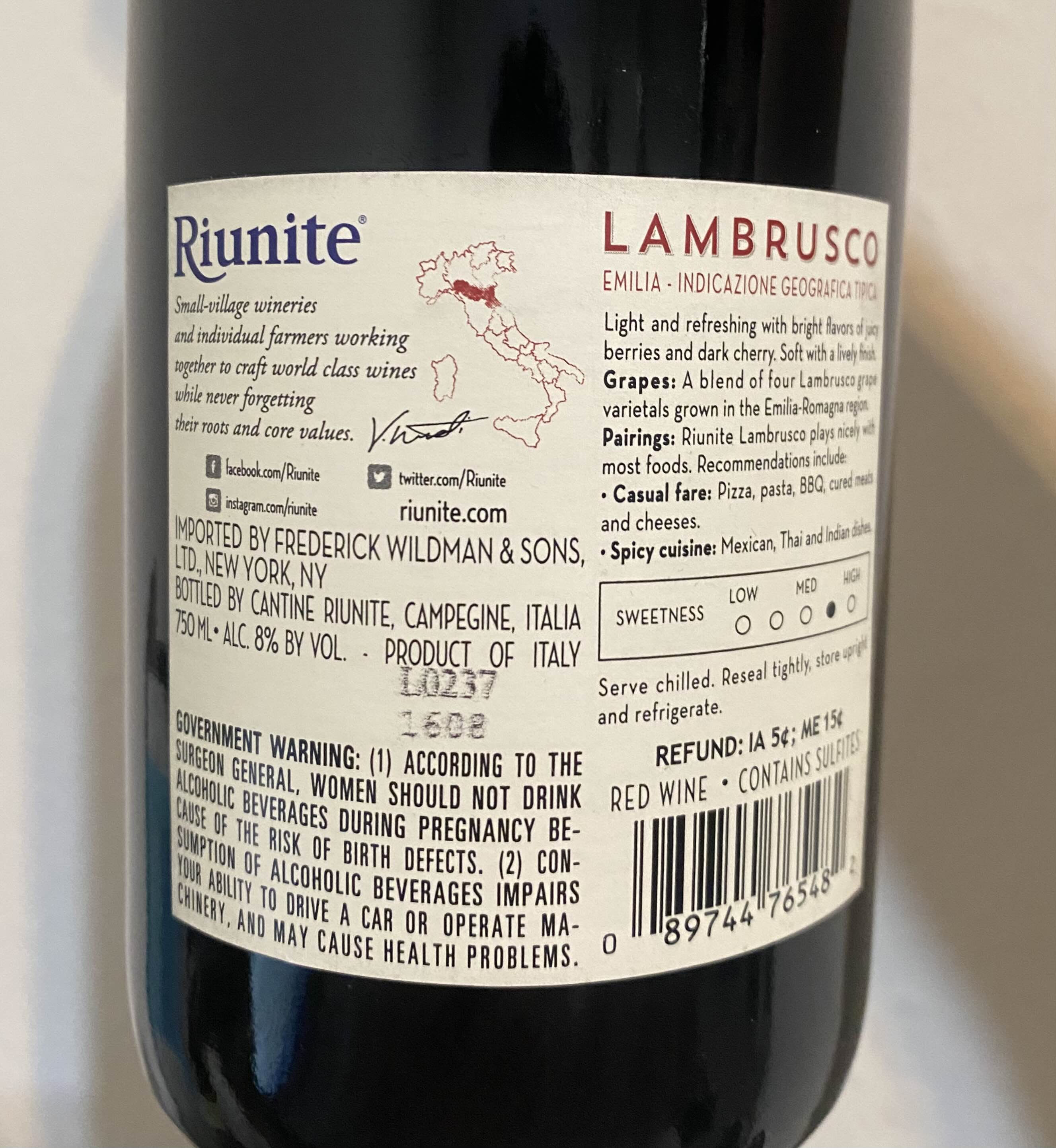 제가 오늘 리뷰할 와인은 리유니트에서 만든 람브르스코 와인입니다.